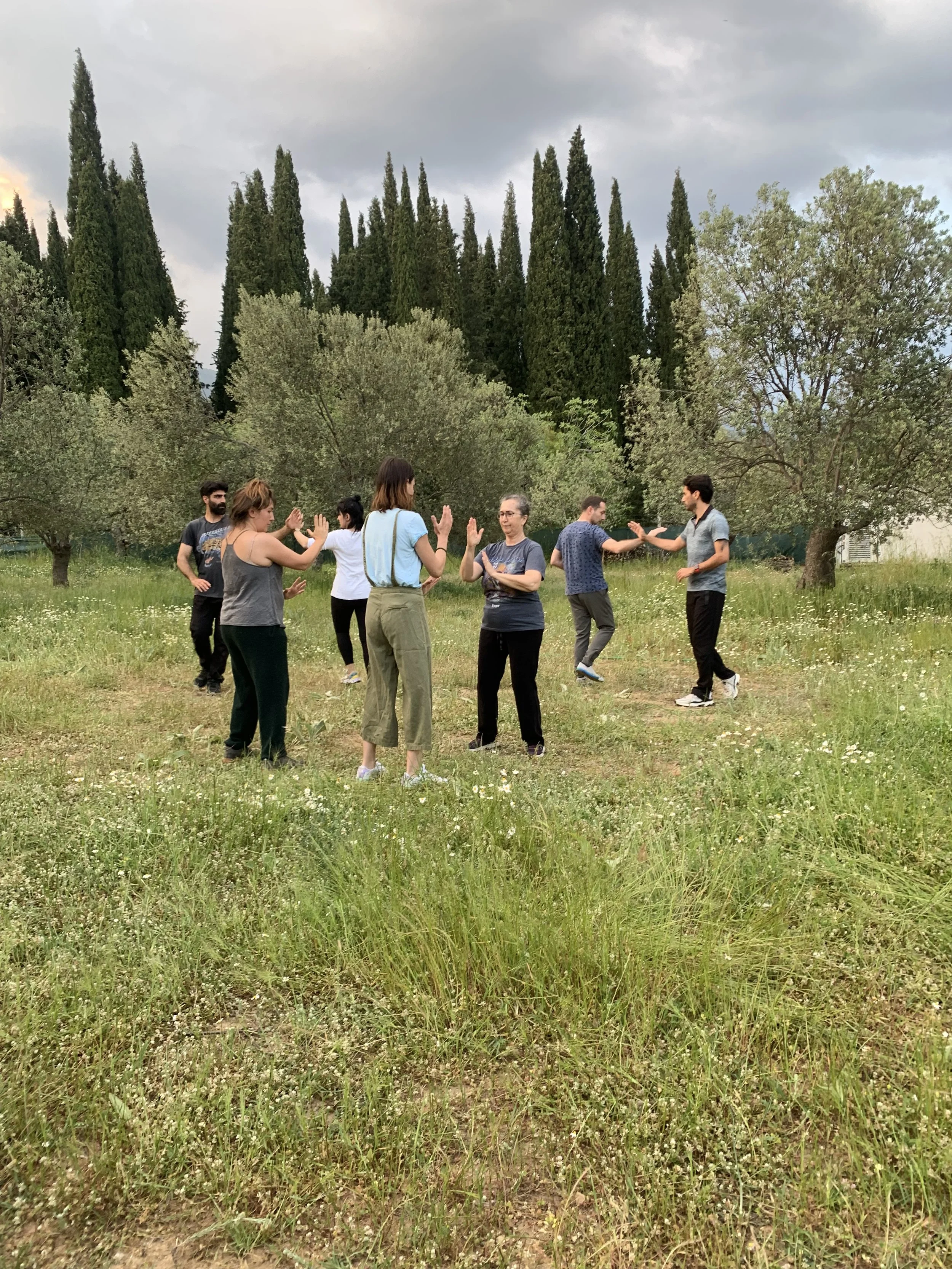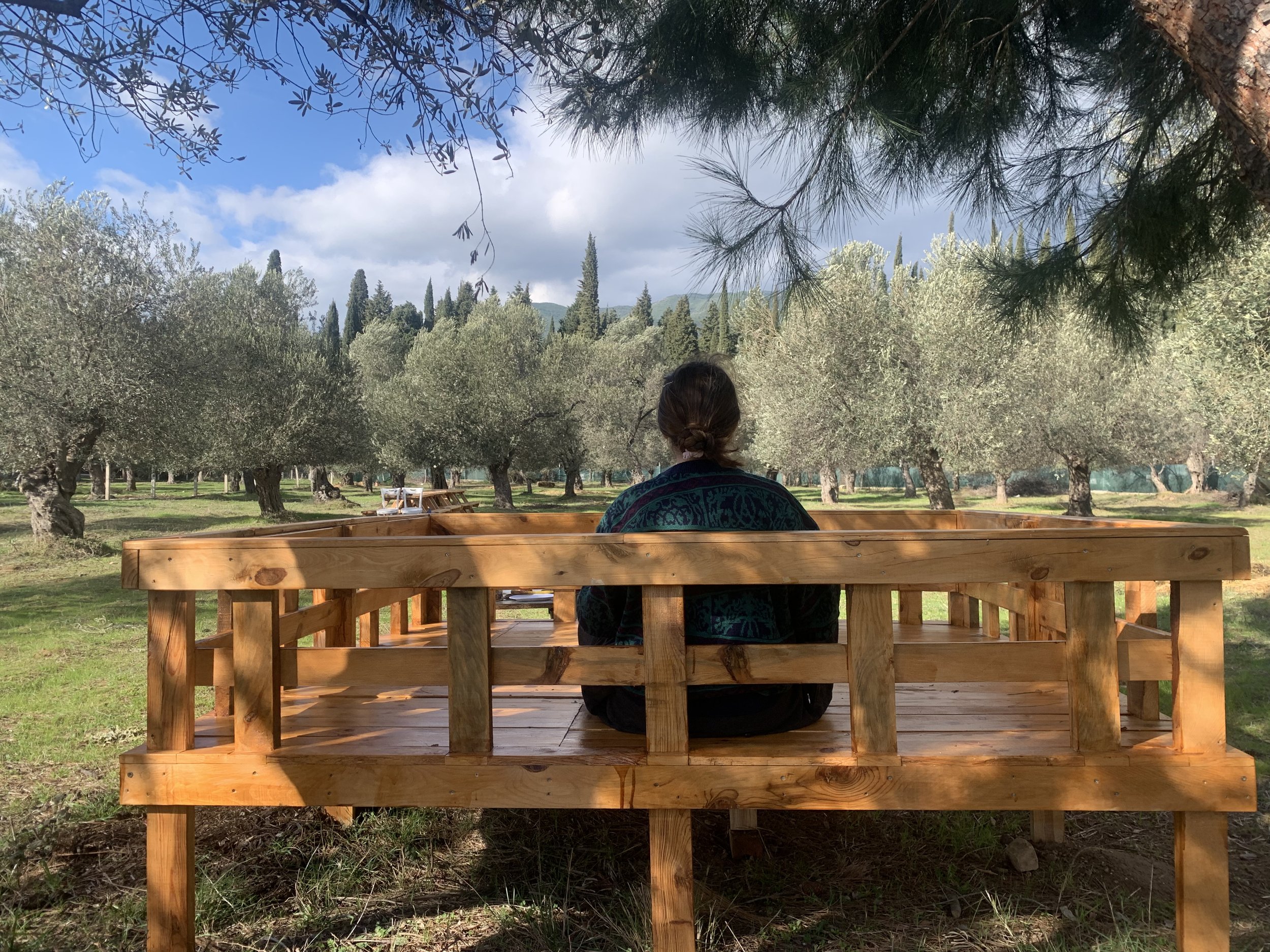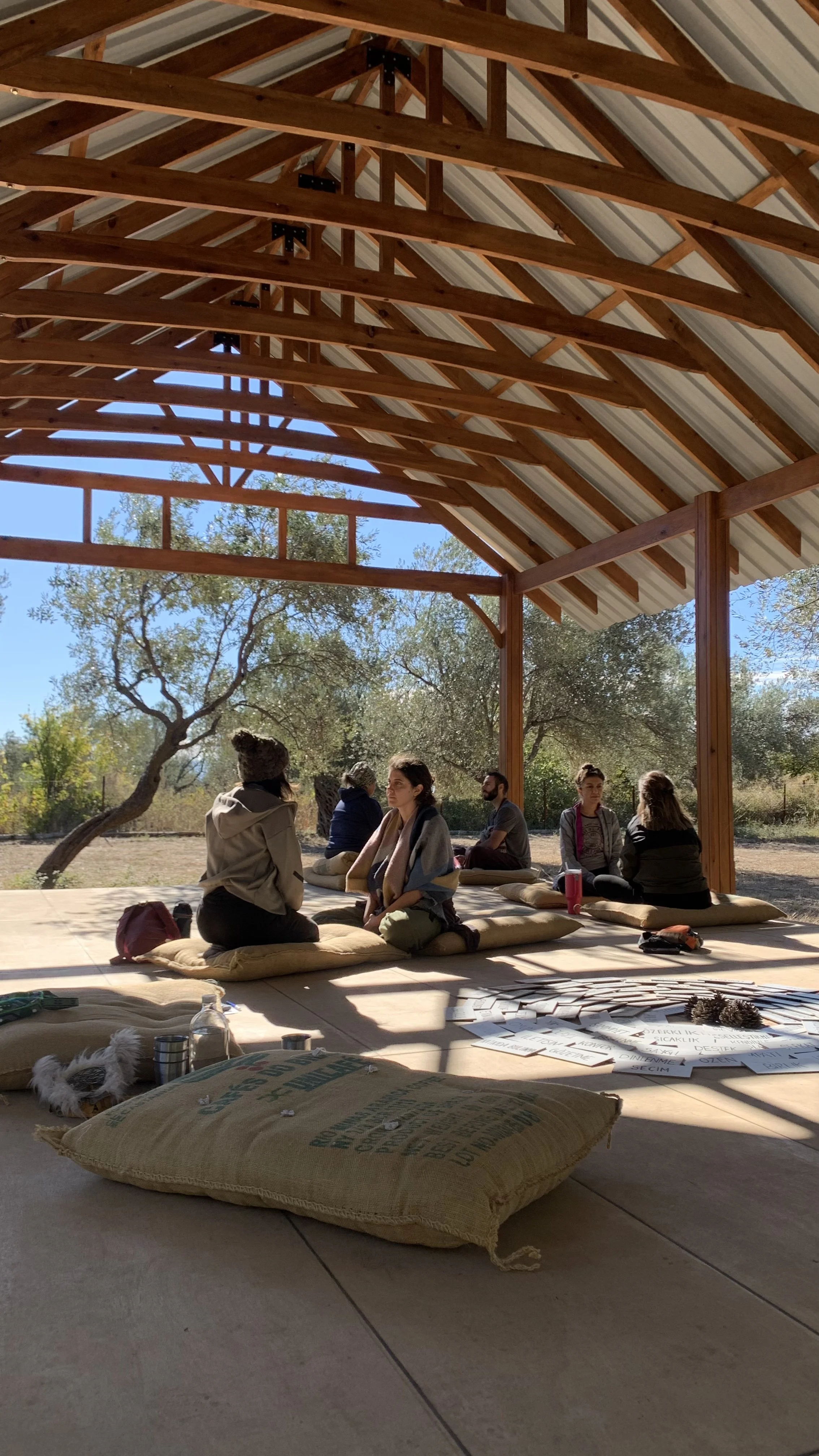 Herşey bu bahçe ile başladı. 91 zeytin ağacımız olan bu bahçe özgür düşlerim için bir alan olabilir mi sorusu ile İstanbul’dan taşınarak bu bahçede için düşündüm, çalıştım, uğraştım, destek aldım. Zeytin hasatımıza her yıl olduğu gibi bu sene de devam ettik. Bahçe bize çoğu zaman düzenli, şimdilerde kendi zamanımızda ev oluyor. En büyük hayalim olan doğa içindeki T’ai Chi Salonum’ hayalimin de ötesinde güzelikle hayata geçti. Misafirlerim oldukça canlandı, hayata hizmet etti. Sürdürmek mümkün olsun… Neden ‘Mutluluk Salonu’ bazen uzun uzun anlatmak yada bilgi vermektense bir şiir tüm anlamı ifade ediyor. Chen Man-ching’in 70’li yıllarda T’ai Chi Ch’uan çalıştıkları salon için yazdığı şiir, sayfanın en altında, okumanız dileğiyle… Bu alan da benim ‘Mutluluk Salonu’m.